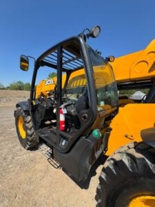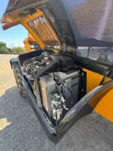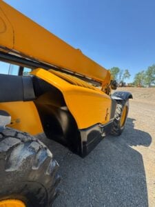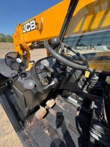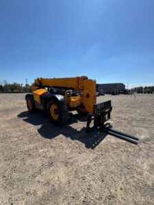 JCB Turbo Diesel Engine, Solid BOSS Tires, 4WD, Crab-Steering, Fenders, Work Lights, Lift Hook, Frame Leveling, Auxiliary Hydraulics, Quick Tach, QC 72″ Carriage w/ 48″ Forks, Serviced, Unit Professionally Cleaned w/ Paint Touchup, Fleet Maintained, Weighs 22270lbs