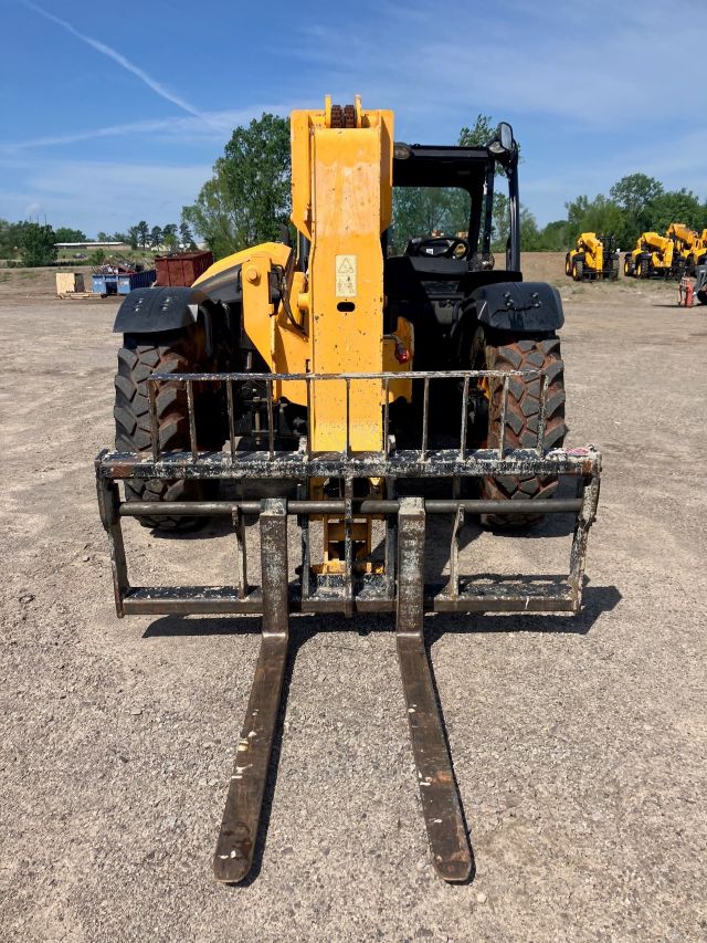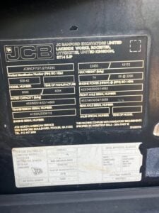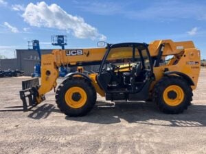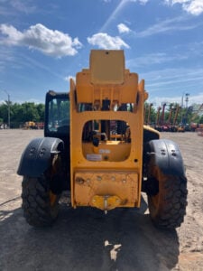 JCB Turbo Diesel Engine, Foam Filled Tires, 4WD, Crab-Steering, Fenders, Work Lights, Lift Hook, Frame Leveling, Auxiliary Hydraulics, Quick Tach, QC 72″ Carriage w/ 48″ Forks, Fleet Maintained, Weighs 22430lbs