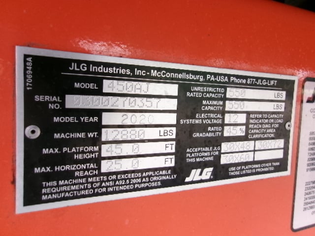 Home – Products – Articulating Boom Lifts – 2020 JLG 450AJ – Used Articulating Boom Lift