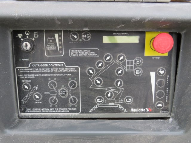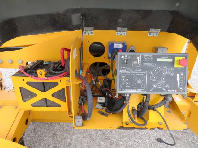 DC 24V Electric Motor (NEW Batteries), Auto-Leveling Hydraulic Outriggers/Stabilizers, JIB, 4′ Basket, Power/Air/Water to Platform, Complete Service, Weighs 7750lbs