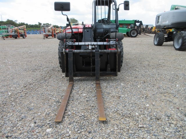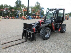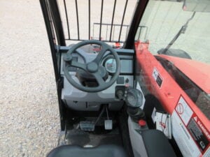 Yanmar Turbo Final Engine – 35HP, 4WS/2WS Crab-Steering, Pneumatic Tires, Multi-Function Joystick, Fenders, 12V Power Port, Flat LED Rotating Beacon, Auxiliary Hydraulics, Quick Tach, Skid-Steer Tilting Carriage w/ Forks, Fleet Maintained, Weighs 6500lbs