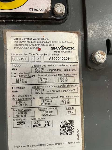 Home – Products – Scissor Lifts – 2023 SKYJACK SJ3219 E – Used Scissor Lift