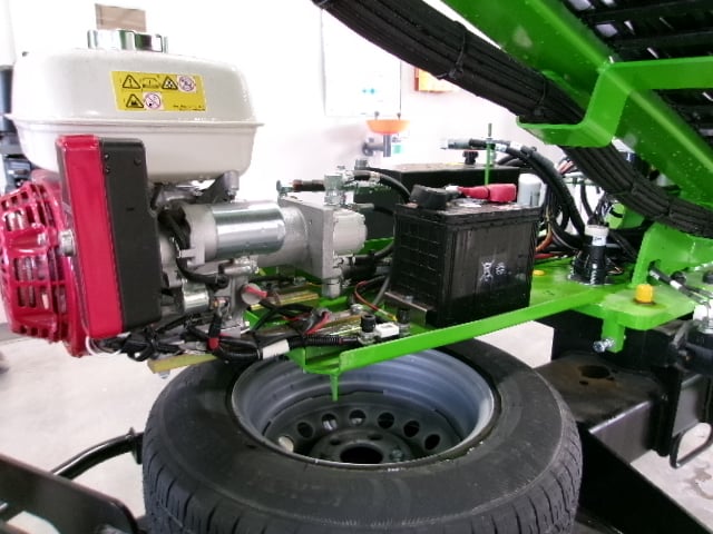 Honda Gas Engine w/ Hydraulic Outriggers/Stabilizers, 2WD Traction Drive & Set, Spare Tire, 110V Power/Air/Water to Platform, Retractable Axles to 3’7” Wide