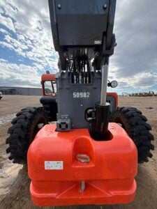 Deutz Turbo Diesel Engine – “No DEF” 74HP, Solid BOSS Tires, 4WD, Crab-Steering, Lift Hook, Frame Leveling, Auxiliary Hydraulics, Quick Tach, QC Carriage w/ Forks, Fleet Maintained, Weighs 23510lbs