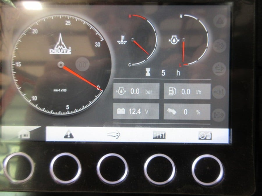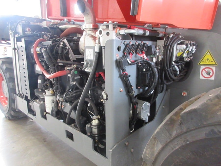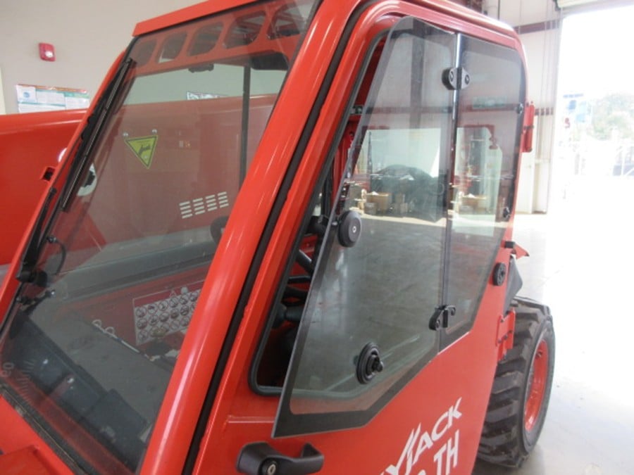 Factory Enclosed CAB w/ HEAT & AC, Deutz Diesel Engine – “No DEF” 74 HP, Foam Filled Tires, 4WD, Crab-Steering, Auxiliary Hydraulics, Quick Attach, QT Side-Tilting Carriage w/ Forks, Weighs 10500lbs
