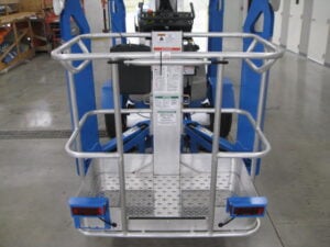 DC 24V Electric – Batteries, Auto-Leveling Hydraulic Outriggers/Stabilizers, JIB, 3’8″ Basket, AC Wiring to Platform, Weighs 4400lbs