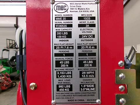 Home – Products – Other Equipment – NEW 2026 MEC MME25 – AWP Vertical Mast Lift